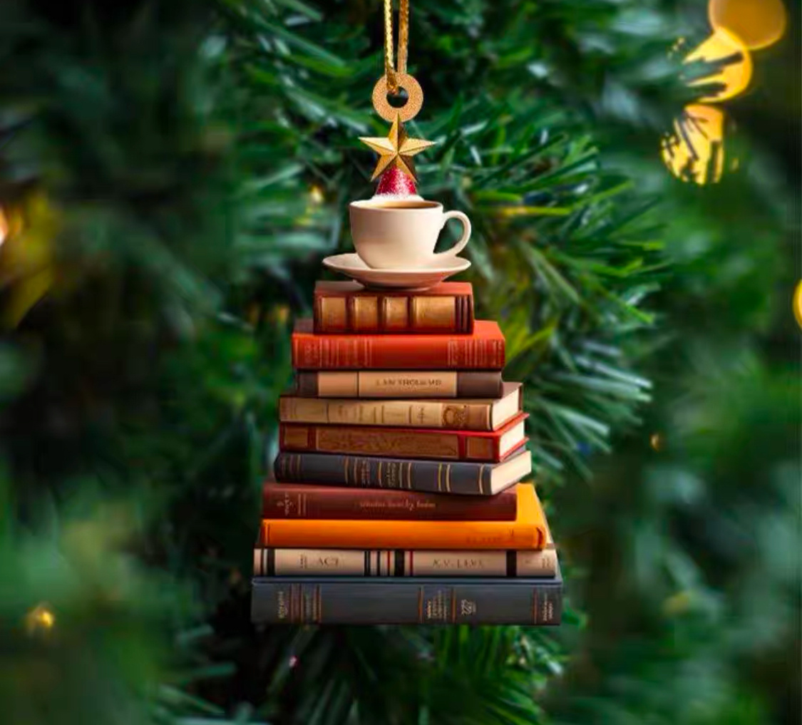 Ёлочка-стопочка книг, увенчанная чашкой кофе - мечта библиофила.
