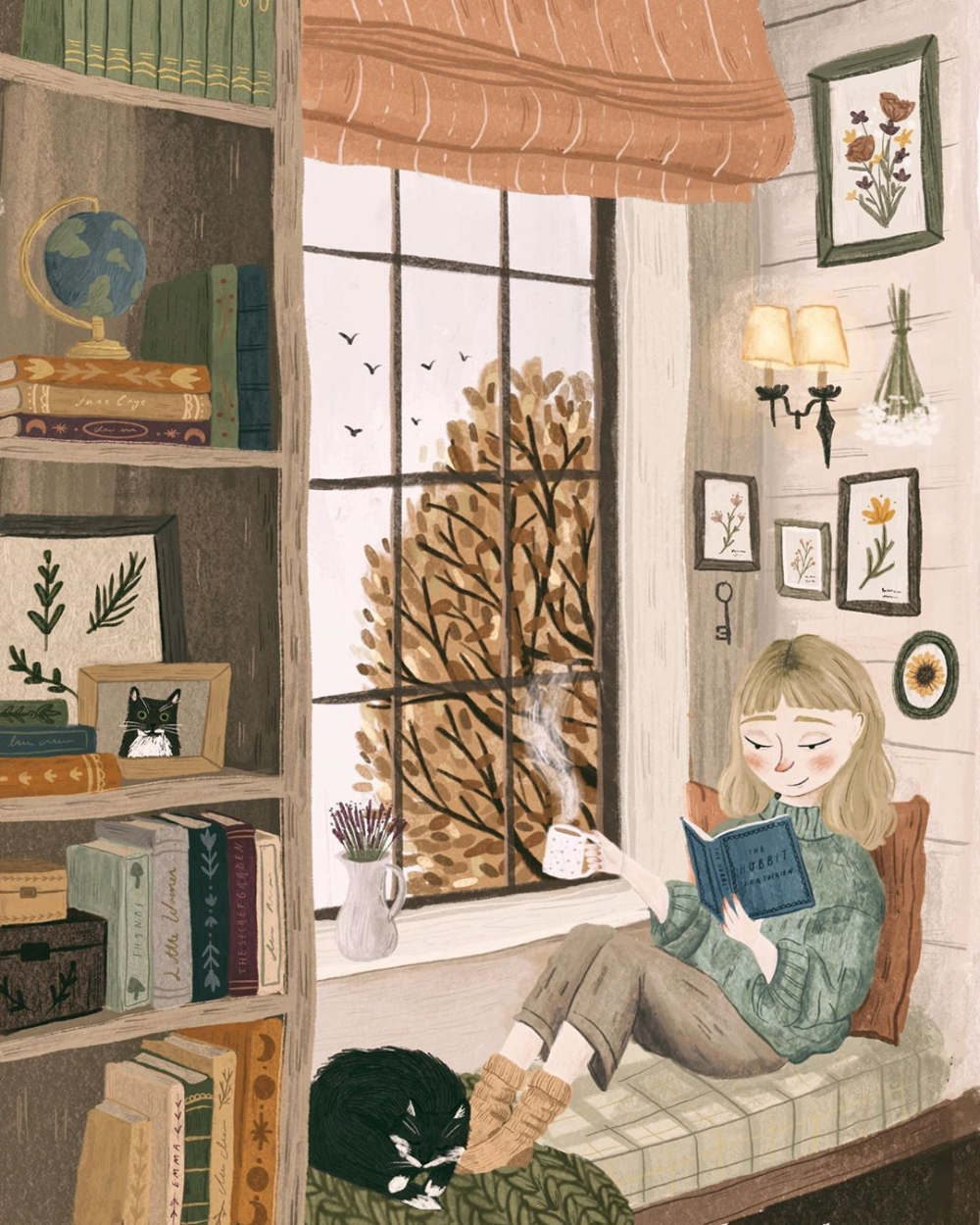После самого тёплого за всю историю наблюдений сентября и в начале октября желтизна только едва тронула лиственные кроны, а на газонах ещё стоят полевые цветы - клевер, пижма и некоторые другие. Но всё-таки осень настала и как было бы славно, если бы она была для всех вот такой - уютной и умиротворённой, с книгами и вкусным кофием.