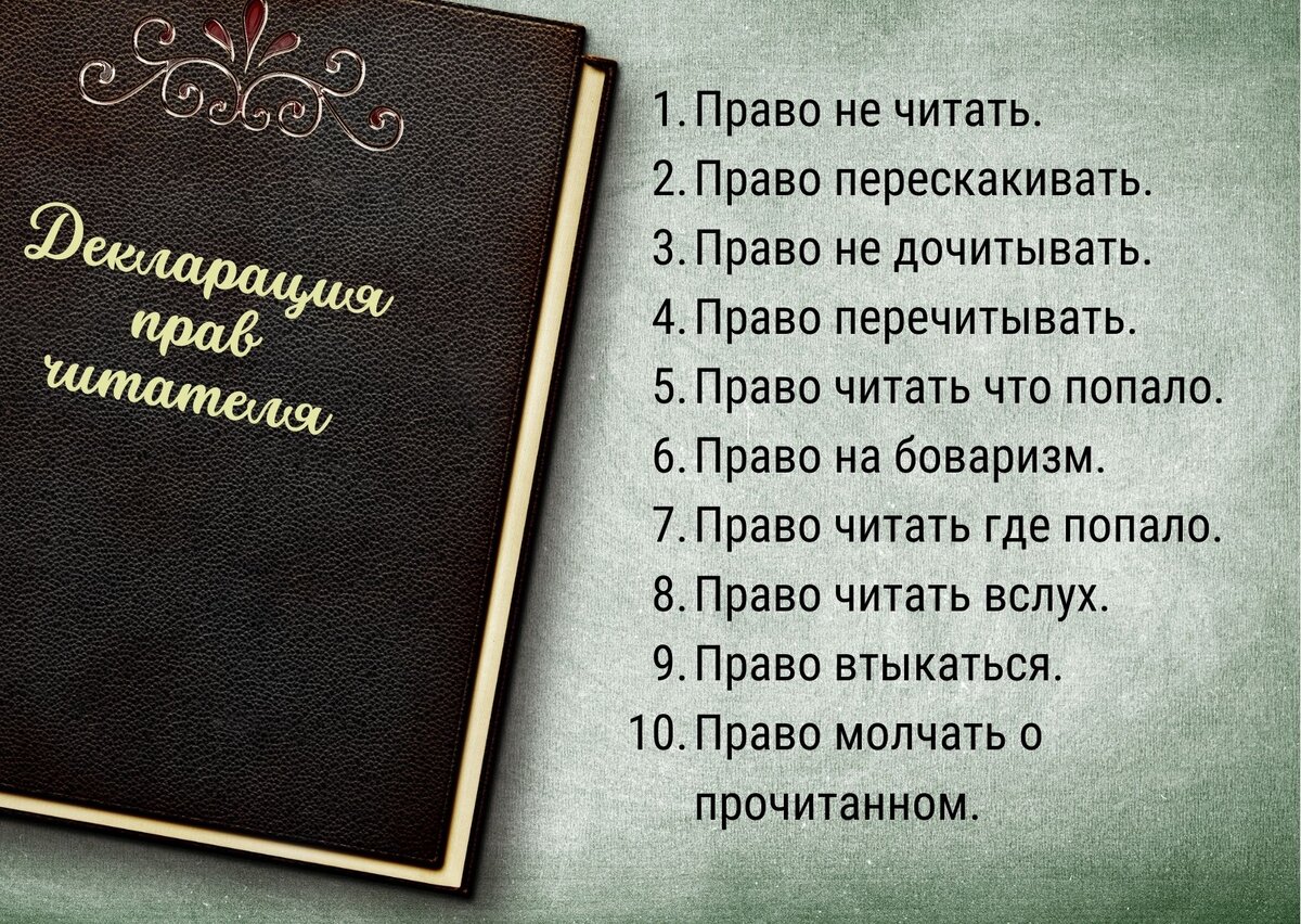 Даниэль Пеннак – французский писатель и учитель литературы составил занятный "документ" - Декларацию прав читателя.